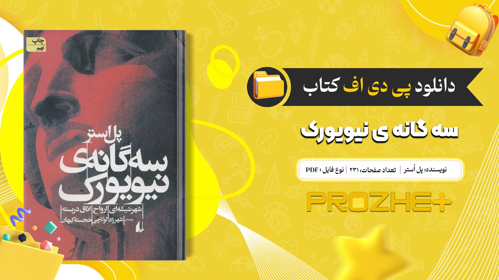 دانلود فایل کتاب سه گانه ی نیویورک پل اُستر PDF با کیفیتی بی نظیر برای شما عزیزان در وب سایت پروزه پلاس آماده شده. کتاب «سهگانه نیویورک» اثر پل استر، مجموعهای از سه رمان کوتاه به نامهای «شهر شیشهای»، «اشباح» و «اتاق دربسته» است که به هم پیوستهاند و داستانی منسجم و پرکشش را خلق میکنند. این کتاب با نثری زیبا و داستانی پر از رمز و راز، خواننده را به دنیایی از اتفاقات غیرمنتظره و شخصیتهای پیچیده میبرد.